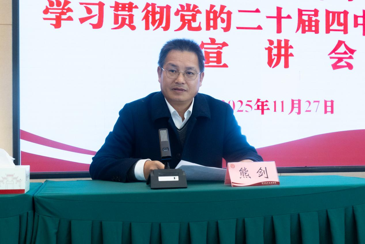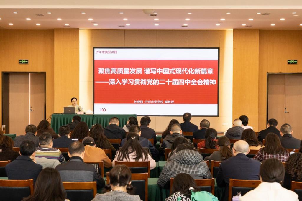 11月27日,学习贯彻党的二十届四中全会精神宣讲会在学校求是厅举行,泸州市委党校副教授孙晓阳作宣讲报告。宣讲会由学校党委副书记熊剑主持。