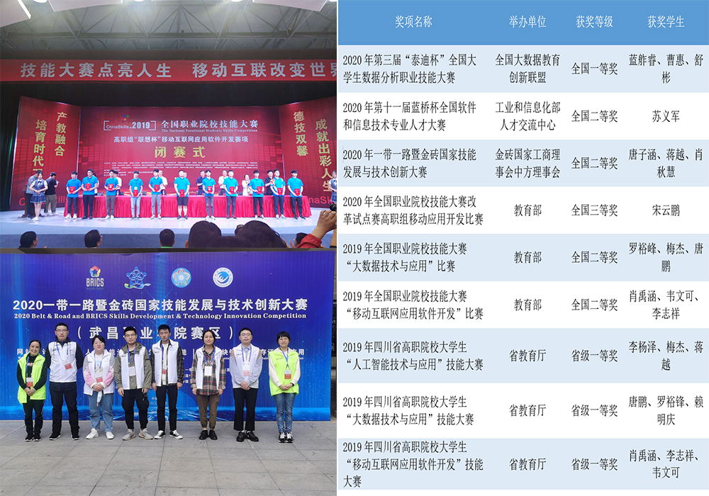 坚持推进学校内涵发展,成功承办世界技能大赛网站设计与开发项目四川省选拔赛、四川省高职院校大学生移动互联网应用软件开发技能大赛等,积极推进1+X证书制度,成功申报“Web前端开发”“大数据应用开发”2个1+X证书试点。