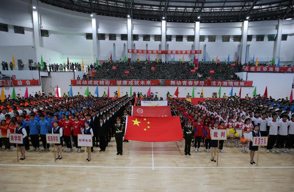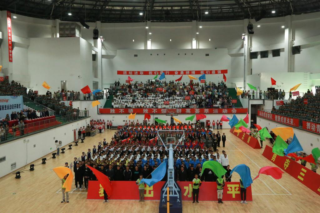 为引导新生在体育运动中享受乐趣、增强体质、培育意志,丰富校园文化生活,我校第二届新生运动会开幕式于11月6日在室内体育馆隆重举行。学校党委副书记、院长杨宗伟,副院长卢世伦,纪委书记熊剑,党委常委、副院长吴代彬、梁杰出席开幕式。学校相关部门、二级学院负责人,新生辅导员以及3000余名新生代表参加开幕式。开幕式由学校党委副书记、工会主席张爽主持。