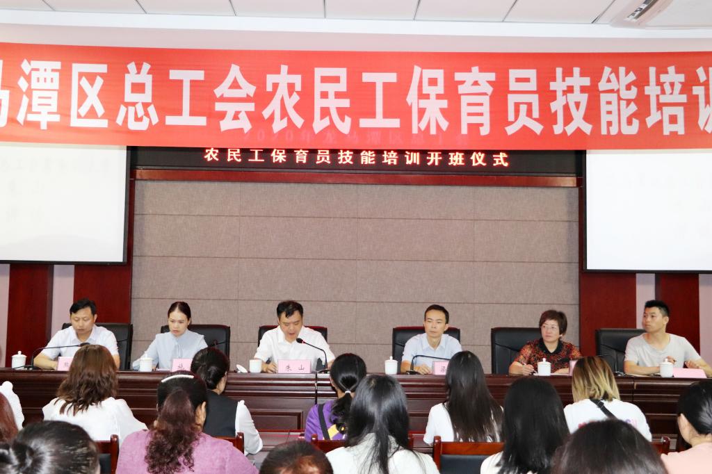 9月12日,泸州市龙马潭区总工会农民工保育员技能培训班开班仪式在我校综合楼510会议室顺利举行。泸州市龙马潭区总工会常务副主席朱山、副主席施艳,泸州市龙马潭区政府督学熊开文,我校副院长梁杰等出席此次开班仪式。仪式由人文学院党总支书记、院长余晓萍主持。