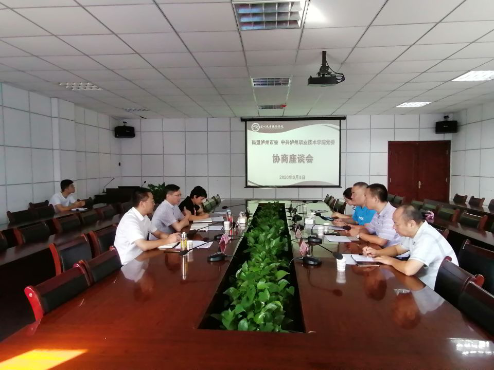 9月8日,中共泸州职业技术学院党委与民盟泸州市委在综合楼415会议室召开协商座谈会。民盟泸州市委主委杜旭林,副主委杨静喜,学校党委书记何杰,副书记张爽,统战部部长尹林等出席会议。