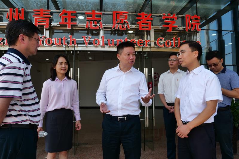 8月27日上午,团省委书记张荣带队莅临学校调研泸州青年志愿者学院。市委常委、副市长吴燕晖,团市委书记王波,学校党委书记何杰,党委副书记张爽陪同调研。