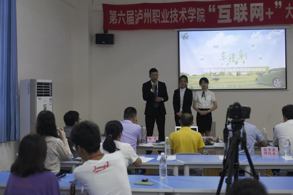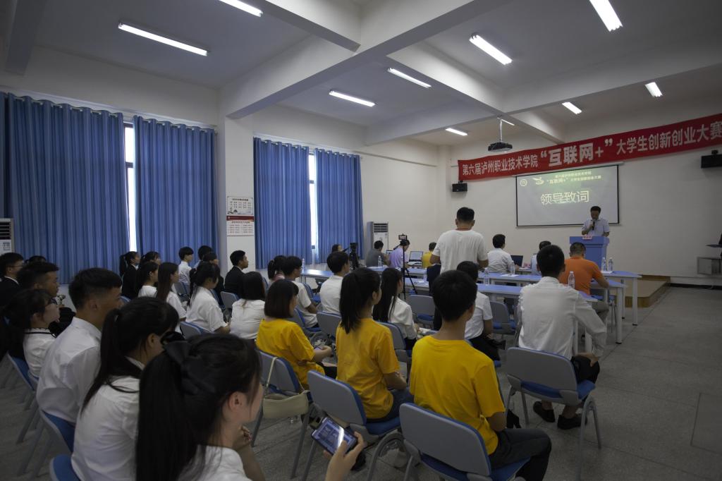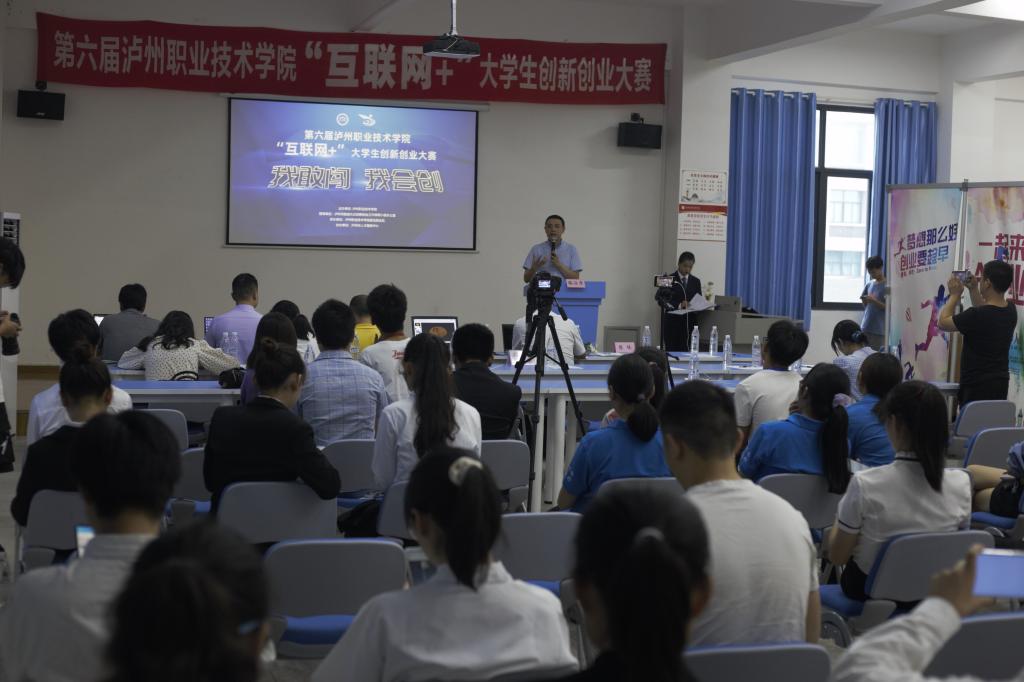 7月10日,主题为“我敢闯、我会创”的第六届泸州职业技术学院“互联网+”大学生创新创业大赛决赛在学校大学生创新创业孵化园路演厅举行,泸州市人才服务中心主任陈林、泸州市大学生创新创业科科长张耀华、学校副院长吴代彬等领导莅临比赛现场指导,泸州市政协委员、德国多特蒙德大学企业管理学、市场心理学双博士贺军,泸州老窖果酒酒业有限公司董事长康运策,泸州华卓财税创始人、巨海集团泸州分公司总经理彭亮,腾讯大成网泸州代理公司总经理张迅,学校招生就业处处长陈雄担任评委,贺军任评委组组长。