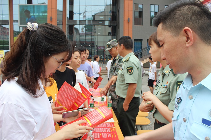 7月8日,龙马潭区武装部和学校武装部共同举办2020年征兵现场咨询活动,泸州市军分区动员处处长谭宏上校、龙马潭区武装部部长付毅、学校副院长梁杰等参加咨询活动。