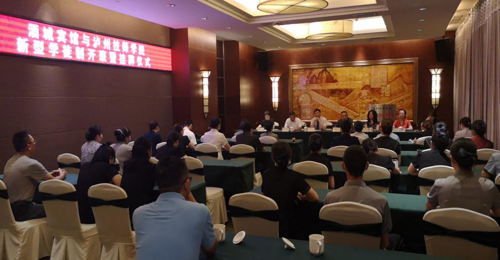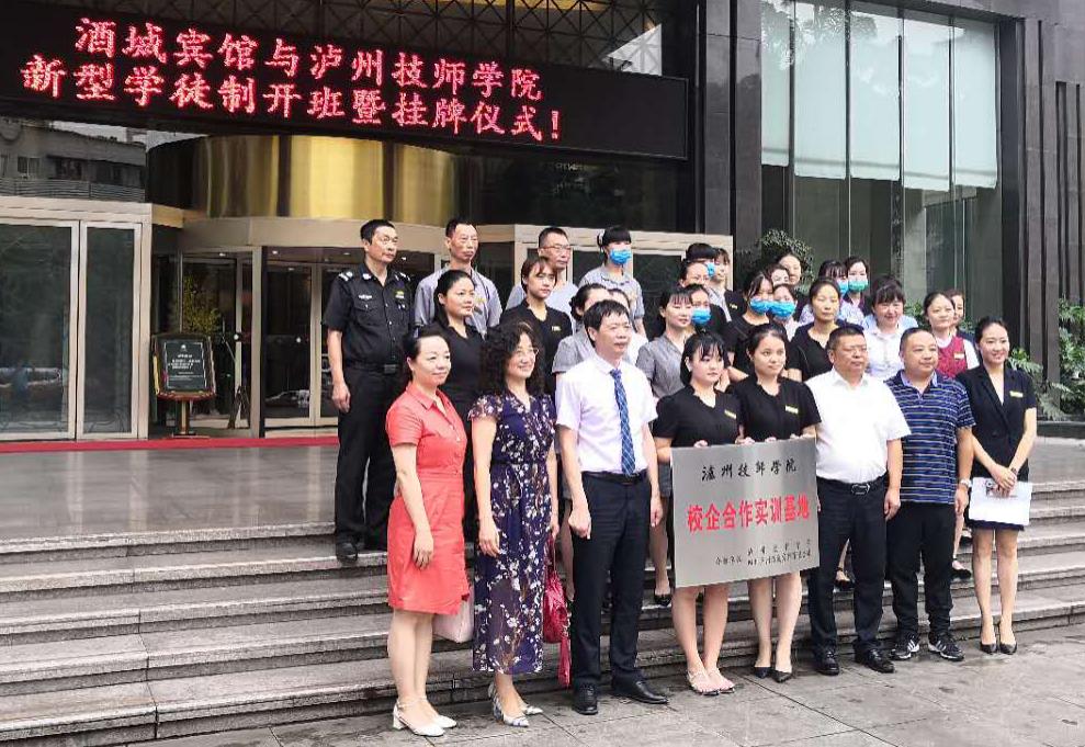 6月30日,泸州酒城宾馆有限公司与泸州技师学院在酒城宾馆二楼会议室举行了企业新型学徒制培训班开班仪式,酒城宾馆总经理贾鑫、市就业服务管理局副局长彭坚、泸州技师学院副院长卢世伦出席开班仪式,培训班老师及首批38名学员参加了开班仪式。
