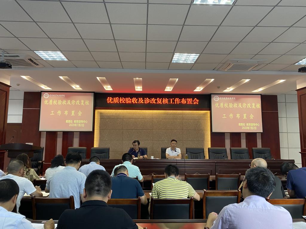 教务处处长陈昌涛就优质校验收的具体工作做了相关布置,针对优质校建设任务,进行了严格的时间节点要求,以及验收佐证材料的准备;教育督导中心、教务处、组织人事处、学生工作部四位负责人分别从学校、专业、课程、教师、学生5个层面就诊改复核已完成的工作进行了通报,未完成任务做了细化分解、倒排工期、明确责任,以便在时间紧、任务重的情况下合理安排时间,完成既定目标。
