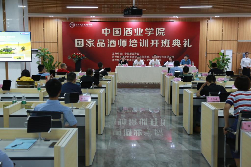 6月16日,中国酒业学院第三届国家品酒师培训开班典礼在我校白酒标准化培训室隆重举行。泸县商务和经济合作局酒类产业发展促进局局长冯秋兰,学校党委副书记、院长杨宗伟,副院长卢世伦等出席,来自全国各酒类企业的100余名参培学员参加了开班典礼。典礼由郎酒学院副院长梁陶主持。