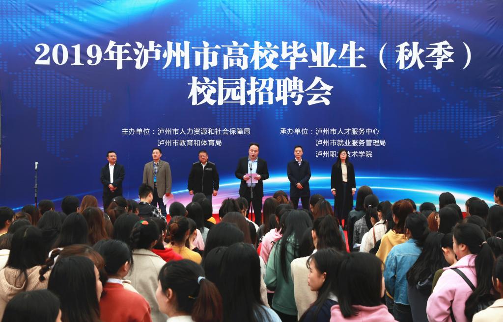 11月8日上午,2019年泸州市高校毕业生(秋季)校园招聘会在我校启明广场成功举办。本场招聘会由泸州市人社局、市教体局主办,我校和市就业局、市人才交流中心联合承办。泸州市人力资源和社会保障局副局长黄烈超、市政府总督学肖林、市人才服务中心主任罗明辉、市就业服务管理局局长李岭、我校副院长吴代彬、学校相关职能部门负责人以及二级学院党总支副书记等出席了招聘会启动仪式。本次招聘会以“城市联动,精准服务”为主题。