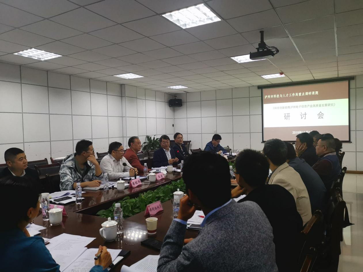 11月1日下午,泸州市科技与人才工作局重点课题《科技创新助推泸州电子信息产业高质量发展研究》研讨会在我校综合楼415会议室召开。市决咨委副主任万举修,市决咨委副主任、我校院长、教授贺元成,市科技和人才工作局副局长王浩、法规科科长李泽建,市经信局信息产业科科长周强,市数字经济局唐经纬,西南医科大学信息工程学院院长、教授杨富华,四川化工职业技术学院信息工程系系主任、教授李宏,我校科技产业处处长、教授王艳戎,信息工程学院院长、教授卓先德,电子工程学院教授吴强,企业代表黄屹、成春林等专家出席会议;我校商学院林洁、林金柱、王平春,信息工程学院罗明全、刘利,电子工程学院邱富军、何盼盼作为课题组成员参加了此次研讨会;会议由泸州市政府决策咨询委员会办公室主任、教授王利主持。