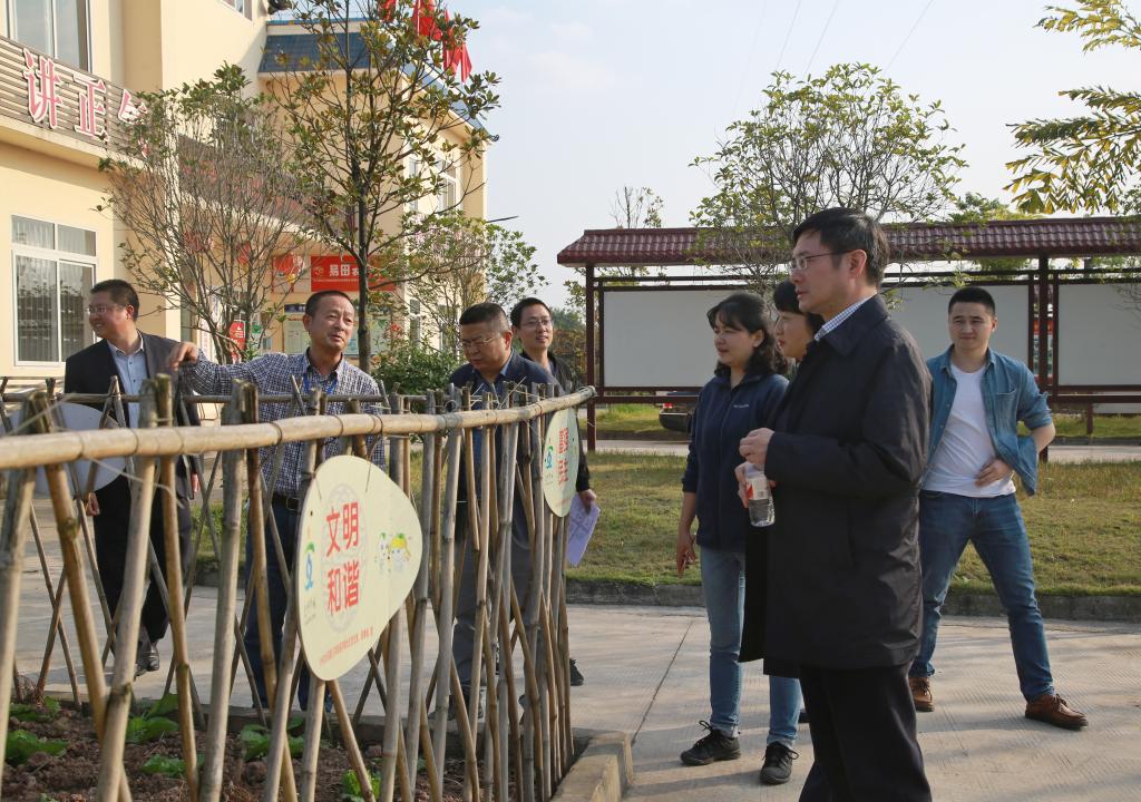 为扎实做好2019年度全国文明城市建设社区包保工作,顺利通过全国文明城市复检,2019年10月30日,学校包保工作领导组在党委书记何杰率领下前往包保对象河咀社区开展深入细致的迎复检督查工作。石洞街道党工委书记曾国容、组织委员熊亮、党政办副主任杨钦平及河咀社区党支部书记袁丛阳陪同检查。