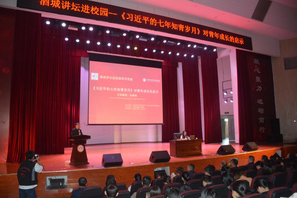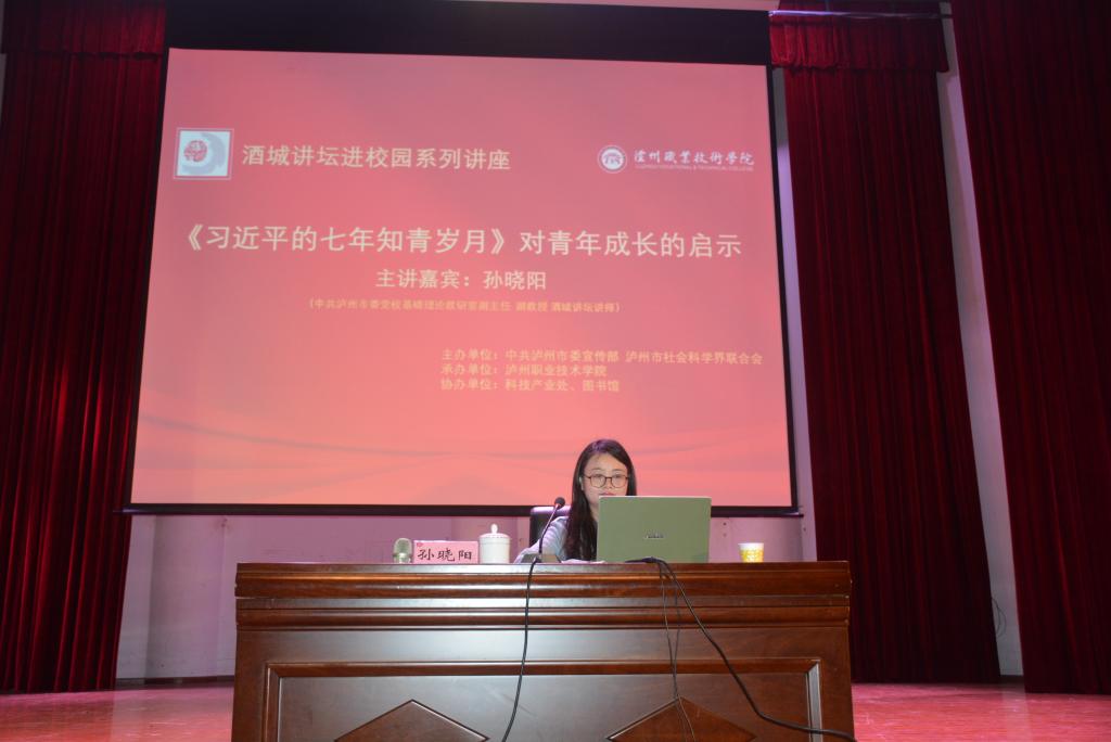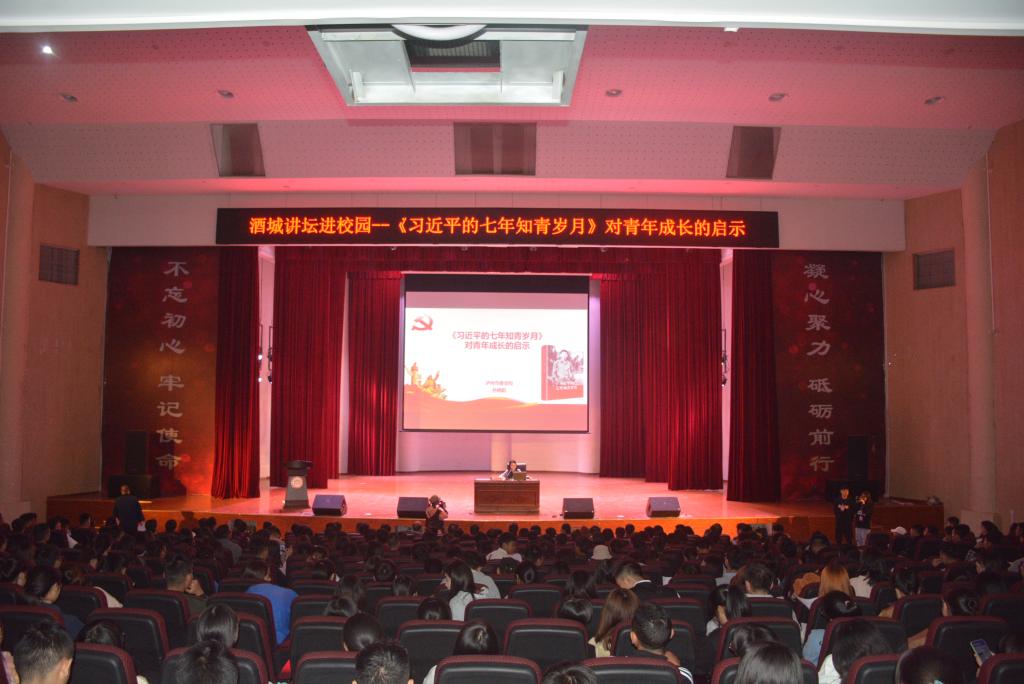2019年10月28日下午,中共泸州市委党校基础理论教研室副主任、副教授、酒城讲坛讲师、“不忘初心、牢记使命”主题教育理论专题辅导教师孙晓阳在我校学生活动中心为700余名师生作了题为《<习近平的七年知青岁月>对青年成长的启示》的专题讲座,讲座由图书馆馆长魏圣坤主持。