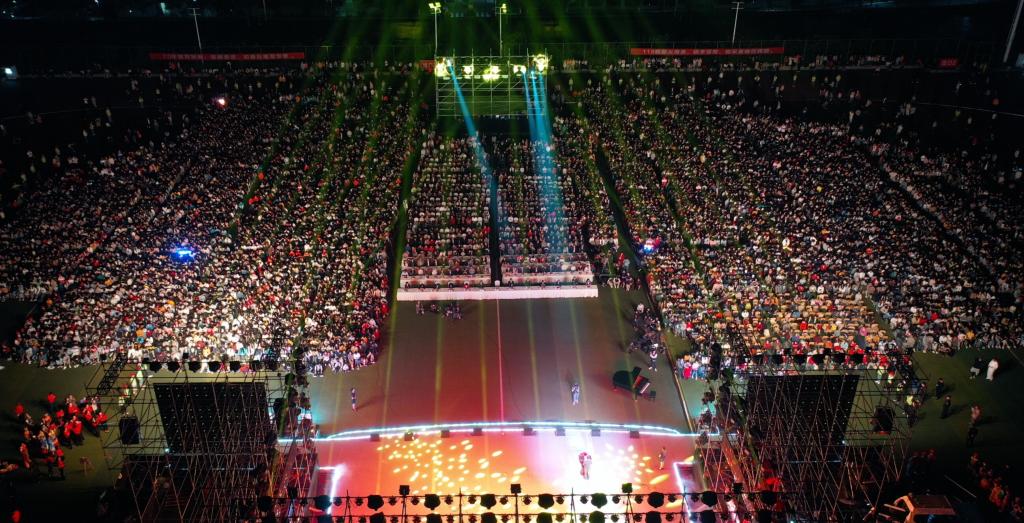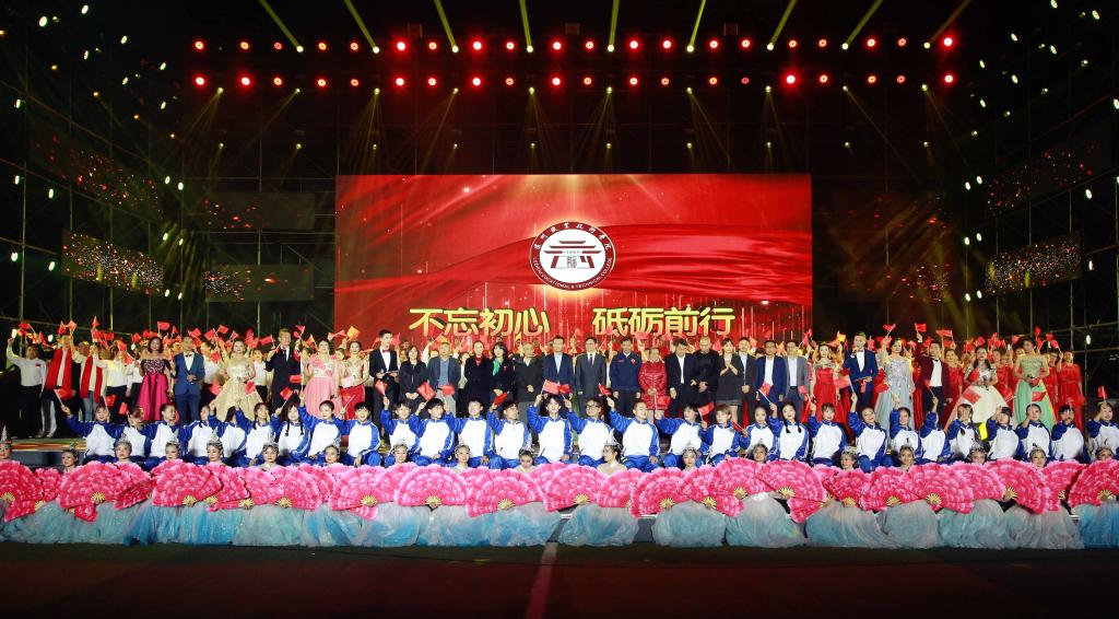 为热烈庆祝中华人民共和国成立70周年,纪念我校成立118周年,2019年10月20日晚上7:30,我校在足球场举行“不忘初心 砥砺前行”庆祝中华人民共和国成立70周年、建校118周年文艺汇演。朱德委员长外孙、原国际文化交流中心主任刘敏,朱德委员长外孙爱人、中华文化交流与合作促进会秘书长高崎,商务部中国商务出版社社长、中商智库执行理事长郭周明,四川省驻京办秘书处副处长、中商智库常务理事顾珏,原泸州师范学校党总支书记、校长曹澍,学校党委书记何杰,党委副书记、院长贺元成及其他校领导班子成员,校友代表,德方专家,合作学校领导,学校全体教职员工和12000名学生参加晚会。