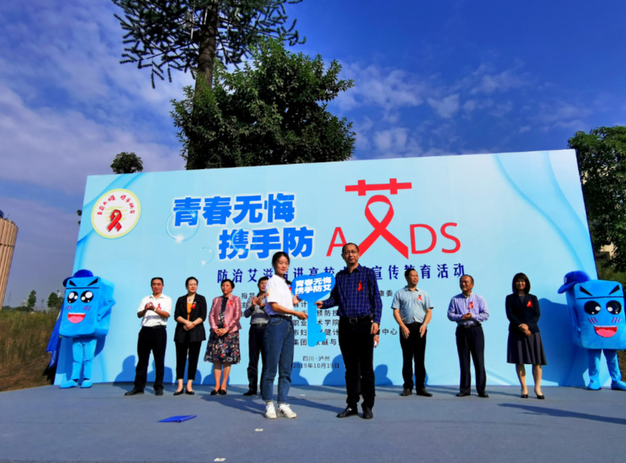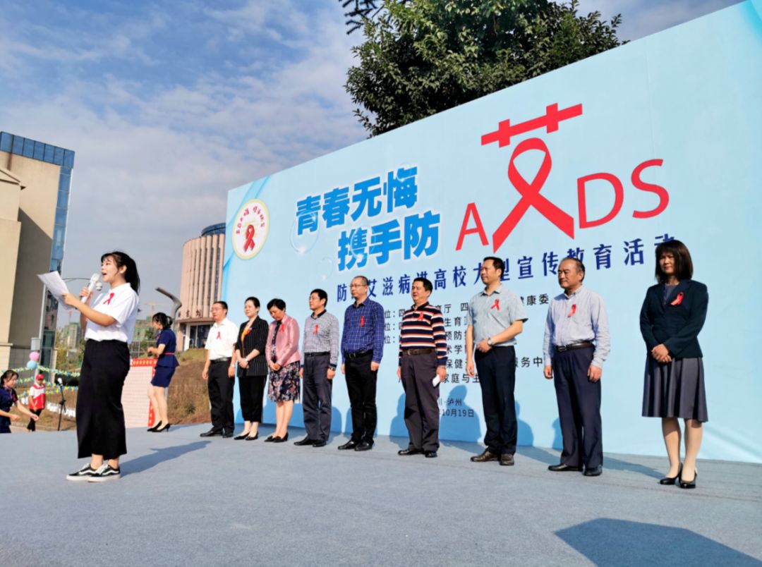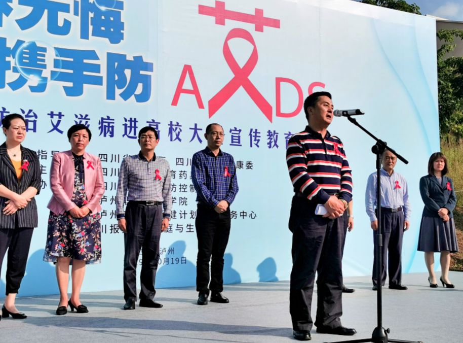 10月19日上午,由省卫生健康委、省教育厅指导,省计划生育药具管理中心主办,省疾病预防控制中心、泸州职业技术学院、泸州市妇幼保健和计划生育服务中心和四川日报报业集团·家庭与生活报协办的“青春无悔 携手防艾”——防治艾滋病进高校大型宣传教育活动(泸州站)在泸州职业技术学院举行。省卫生健康委重传处副处长赵亮,省教育厅体卫艺处调研员卢旭,泸州职业技术学院副院长徐波,省计划生育药具管理中心、省疾控中心和泸州市卫生健康委等相关负责同志出席活动。