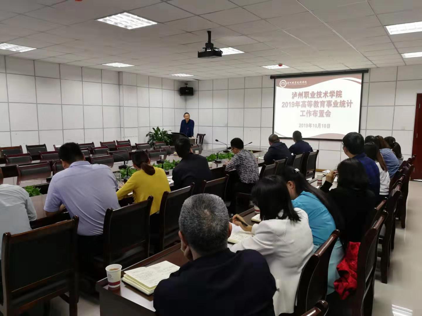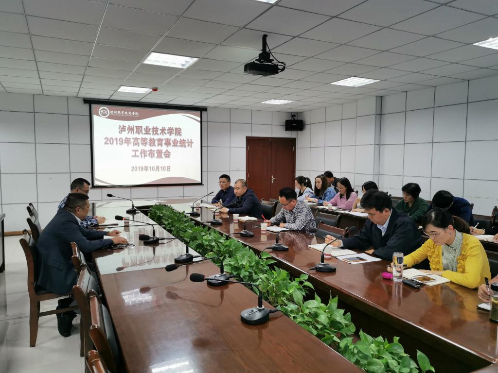 2019年10月10日下午15:00,我校在综合楼415会议室召开了2019年高等教育事业统计工作布置会议。学校副院长卢世伦,相关职能部门的负责人和经办人共20余人参加会议,会议由学校统计办公室主任、计财处副处长胡万友主持。
