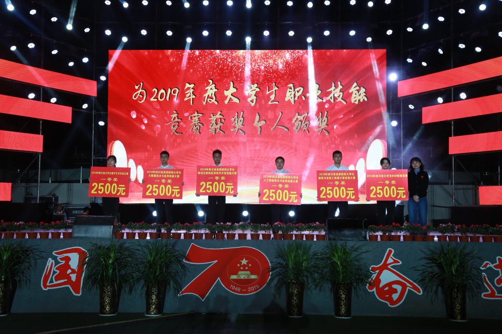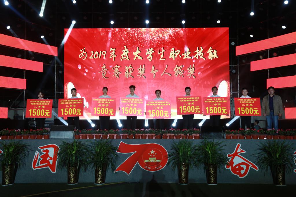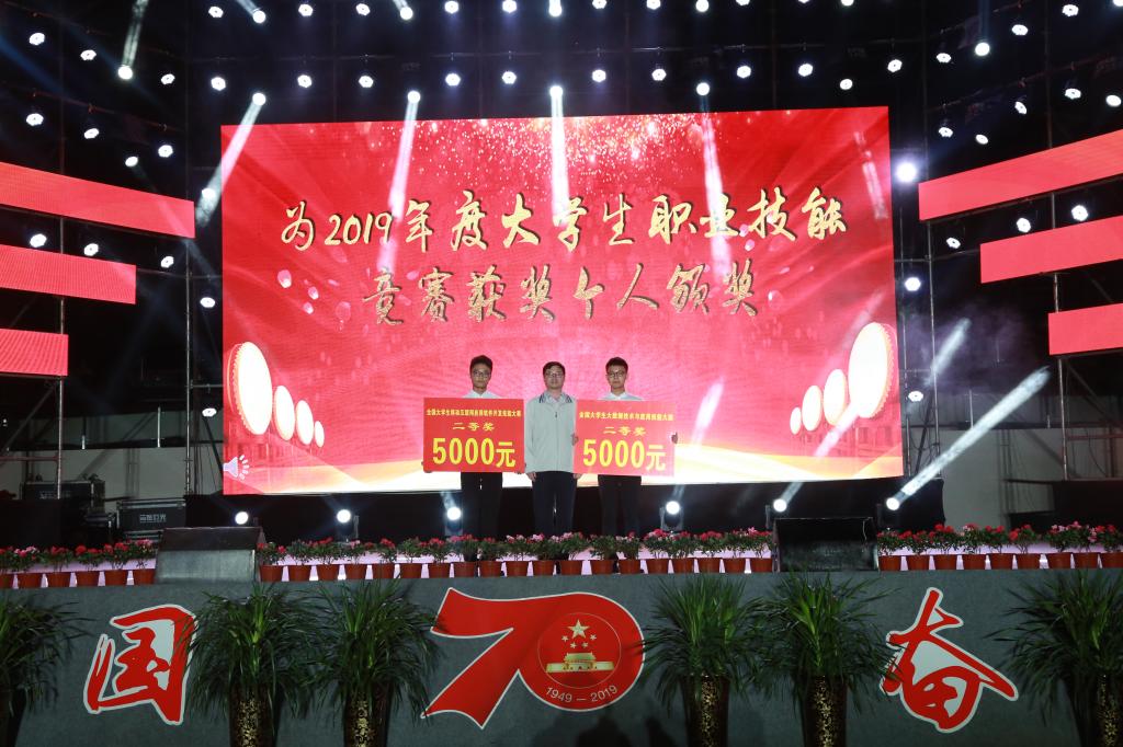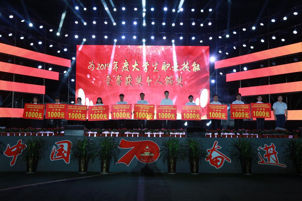 校领导为2019年度大学生职业技能竞赛中获奖的优秀个人和集体颁奖。