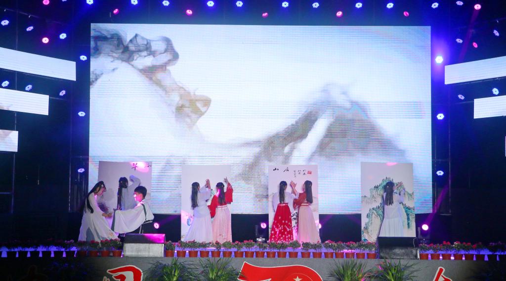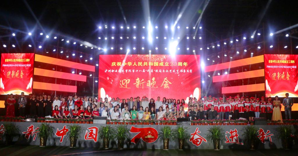 为热烈庆祝中华人民共和国成立70周年,丰富校园生活,活跃校园气氛,弘扬学校文化,展示学校特色,欢迎大一新生,融洽师生情谊,加强我校学生的凝聚力,2019年10月11日晚上7点,我校在足球场隆重举办了第十八届“代英”校园文化艺术节开幕式暨“礼赞新中国奋进新时代”迎新晚会。学校党委书记何杰、党委副书记张爽,副院长彭涛、徐波、张直明,纪委书记熊剑,党委委员邓安容出席晚会。相关部门、二级学院(部)负责人,新生辅导员和2019级5000余名学生参加晚会。