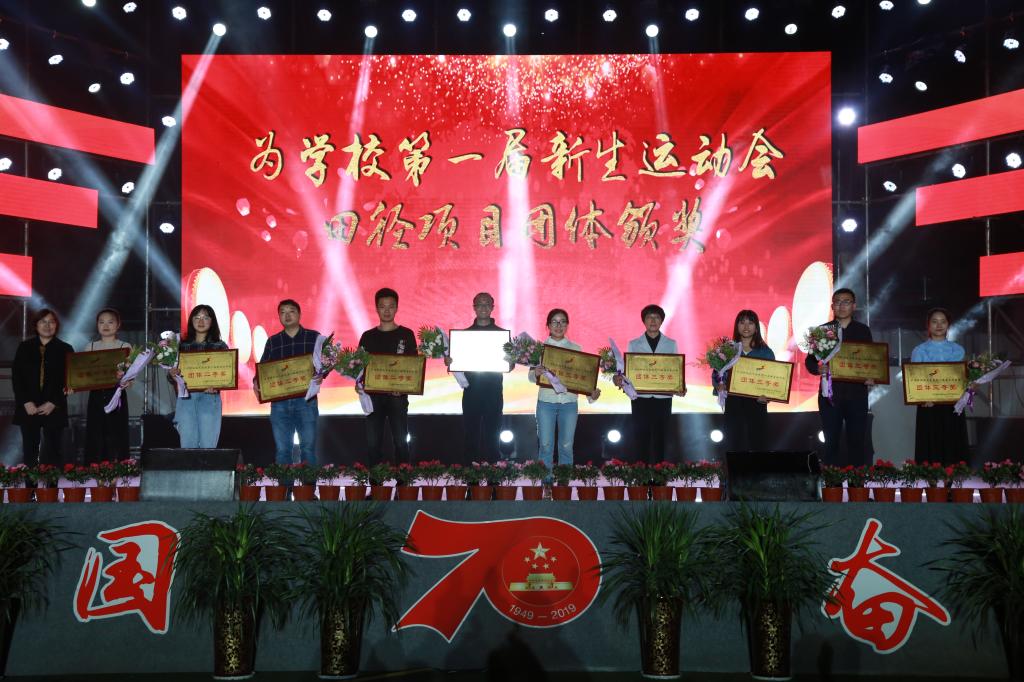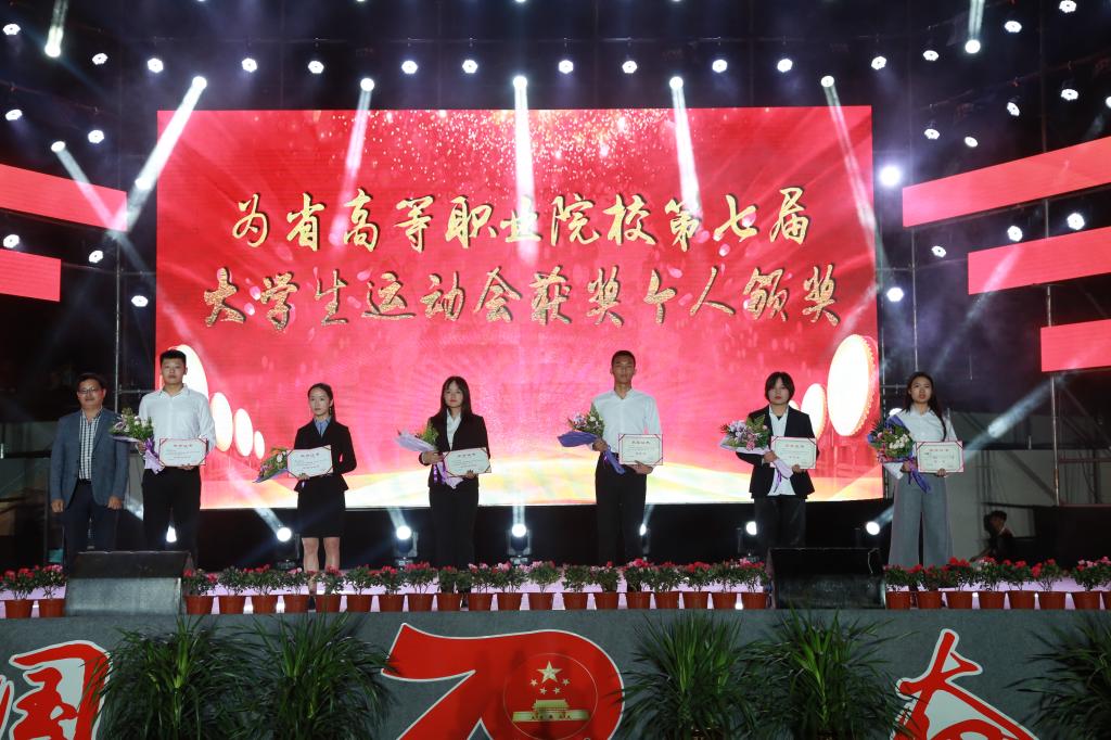 晚会中,校领导还分别为在第一届新生运动会田径项目、省高等职业院校大学生运动会中获奖的同学颁奖。