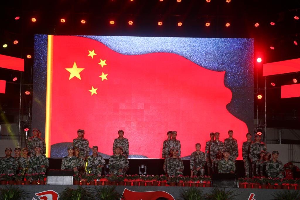 合唱歌曲《强军战歌》为本场晚会画上了圆满的句号,歌声中饱含着同学们满腔爱国热情。