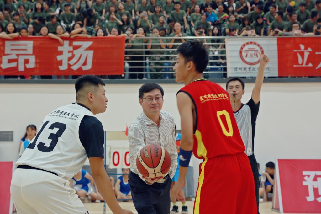 何杰亲自为篮球揭幕战开球。裁判员鸣笛,发球、运球、传球……每个动作都展现了同学们团结、奋进的精神。在欢呼雀跃声中,开幕式圆满落下帷幕。