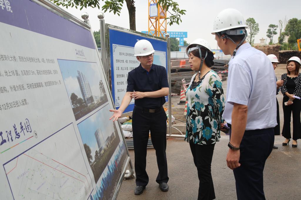 马宗慧一行先后到我校室内体育馆、室内游泳馆、培训中心、科技转化大楼、第二公共教学楼、泸州市公共实训基地以及泸州职业技术学院实训基地建设项目进行实地考察,何杰对学校的项目建设情况、项目重点工作和主要问题进行了详细汇报。