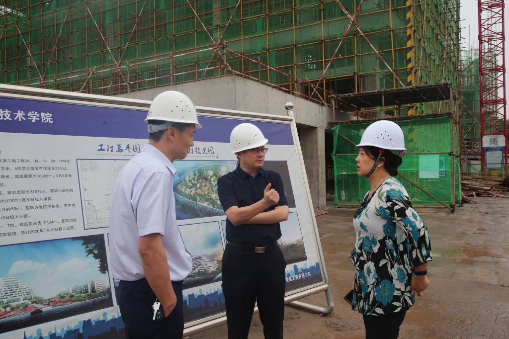 在施工现场,马宗慧通过看图纸、听规划、问进度,对我校建设的重点项目推进情况给予了充分肯定,并提出了具体要求:第一,严推进度,在保证工程质量及安全的前提下,严格按照年初倒排工期表,加快推进工程进度,确保在计划工期内完成建设并投入学校教学、实训及培训工作;第二,狠抓安全,学校建设项目是重要民生工程,要高度重视安全生产,加强项目现场施工安全管理;第三,精巧规划,目前是国家大力发展职业教育的黄金时期,学校要利用好重点建设项目,明确发展定位、做好发展规划、发挥办学优势,加快推进产教融合、育训结合、校企合作的办学模式,为区域发展提供高质量人才保障。
