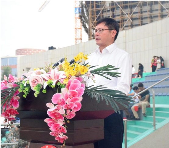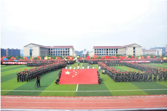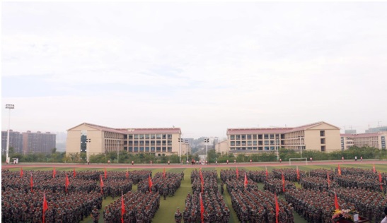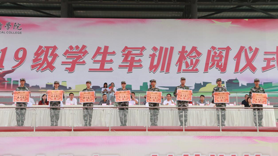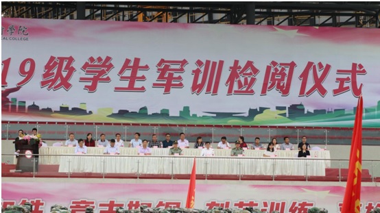 9月21日上午,我校2019级学生军训检阅仪式在运动场举行。泸州军分区战备建设处处长梁棋上校、龙马潭区人民武装部部长付毅上校,学校党委书记何杰,党委副书记张爽,党委委员、副院长徐波、张直明,纪委书记熊剑,党委委员邓安容,以及相关职能部门、二级学院负责人出席本次检阅仪式。