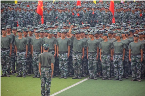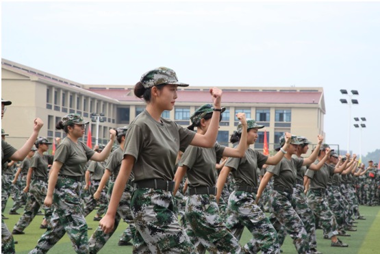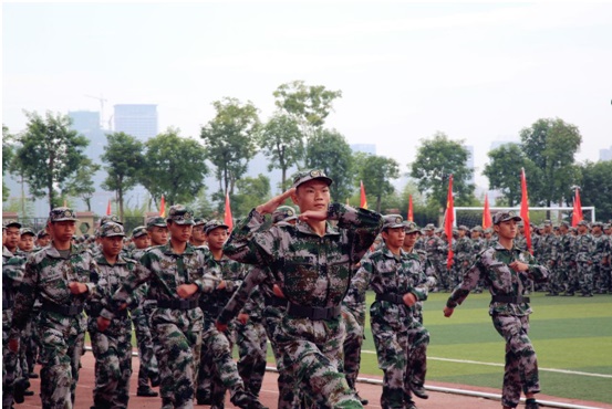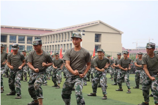 擒敌拳、军体拳和匕首操表演方队,以高昂的士气、严整的军姿、洪亮的口号、整齐划一的队形向学校领导、老师及承训官兵们汇报了21天严格训练所取得的丰硕成果,现场掌声雷动,师生热情高涨。