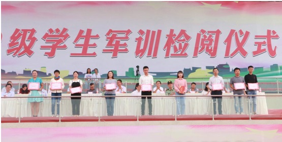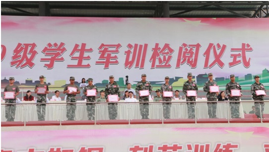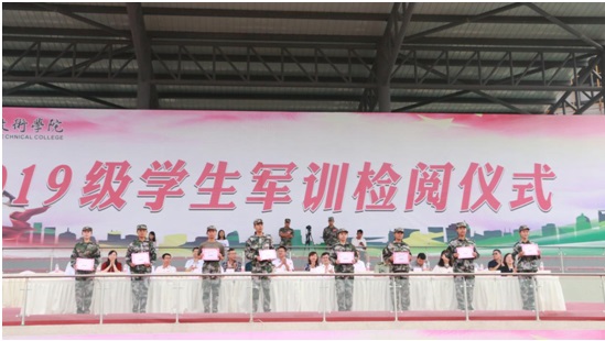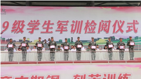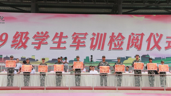 学校党委委员、副院长张直明宣读《泸州职业技术学院关于表彰2019级新生军训先进集体和优秀个人的决定》,对68间文明寝室、8个先进连队、11名优秀连长、9名优秀指导员、262名军训标兵予以表彰。