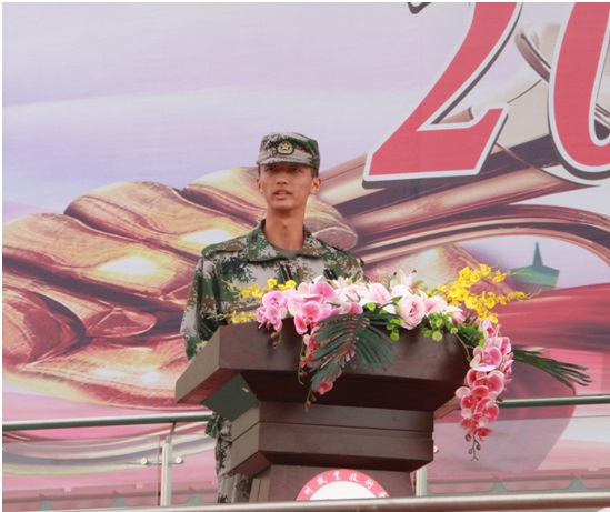 军训标兵代表赵胜发言