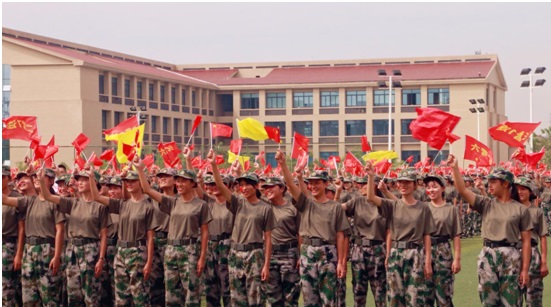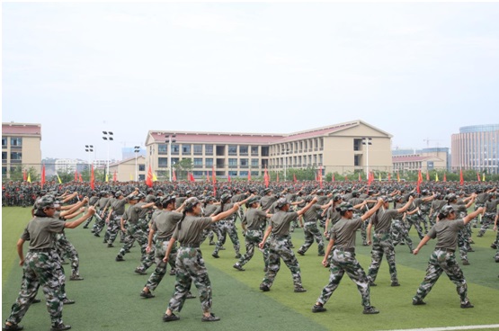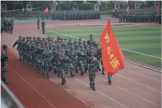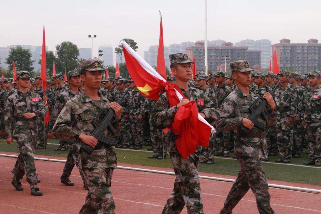 盛大而精彩的分列式表演随后进行。阅兵场上,八个营65支方队近5000名参训新生接受检阅。同学们精神抖擞,英姿勃发,依次以整齐的步伐走过主席台。高昂的士气和铿锵的步伐赢得全场一阵阵热烈的掌声。