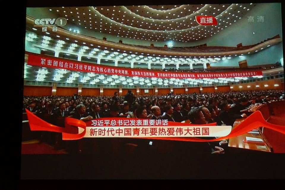 4月30日上午10时30分,纪念五四运动100周年大会在人民大会堂举行,中共中央总书记、国家主席、中央军委主席习近平出席大会并发表重要讲话。我校积极响应共青团中央办公厅号召,组织各二级学院团支部书记、老师以及共青团员在玉阶素质教育中心收看“纪念五四运动100周年大会”的直播。