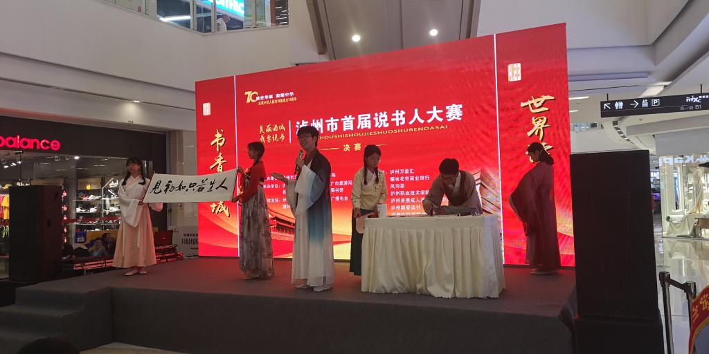 为庆祝第二十四个世界读书日,为进一步激发全民阅读热情,提升广大市民文化、文明素质,为青少年搭建广阔的阅读和学习平台,我市在万象汇举办了“美丽酒城·我要说书”泸州市首届说书人大赛。本届赛事由泸州市文化广播电视和旅游局主办,泸州市图书馆和我校承办,各区县文化广电旅游局、各区县图书馆、各大专院校图书馆参与。