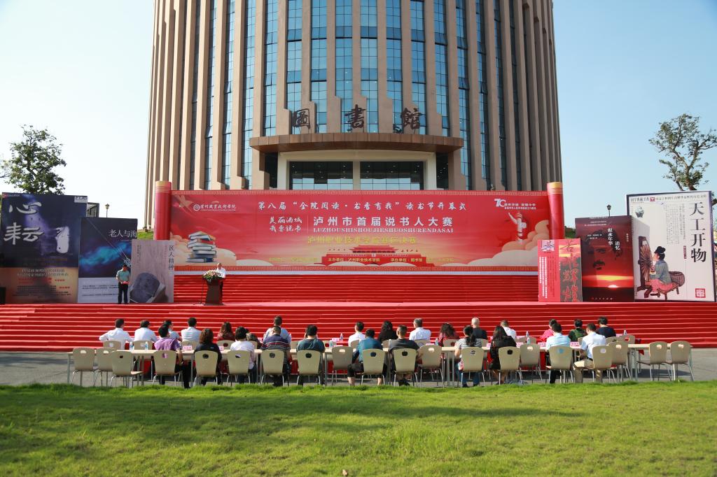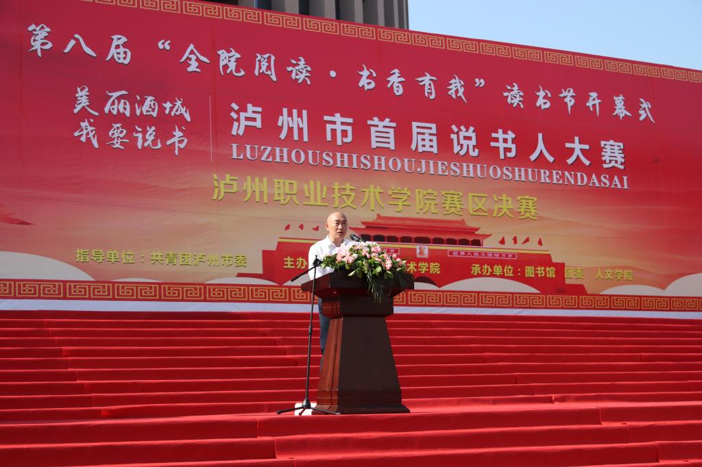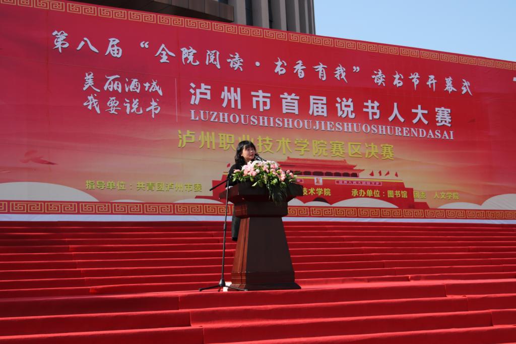 本届读书节活动以“全院阅读·书香有我”为主题,同时也是泸州市首届“美丽酒城·我要说书”说书人大赛泸职院赛区决赛。共青团泸州市委书记王波,泸州市图书馆馆长吴铭、副馆长张庆,西南医科大学、四川化工职业技术学院、四川警察学院、四川三河职业学院、江阳城建职业学院的图书馆馆长,以及在家的校领导,各职能部门、二级学院负责人及师生代表参加了开幕式。开幕式由副院长徐波主持。