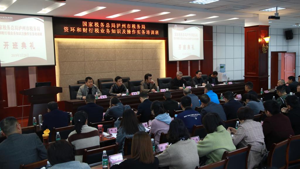 3月26日,国家税务总局泸州市税务局资环和财行税业务知识及操作实务培训班在我院顺利开班,学院副院长彭涛,泸州市税务局党委委员、副局长袁波,人事科科长刘毅巍,资环科科长唐政,财行科科长张建华出席仪式。泸天化学院党总支副书记王亮主持开班仪式。