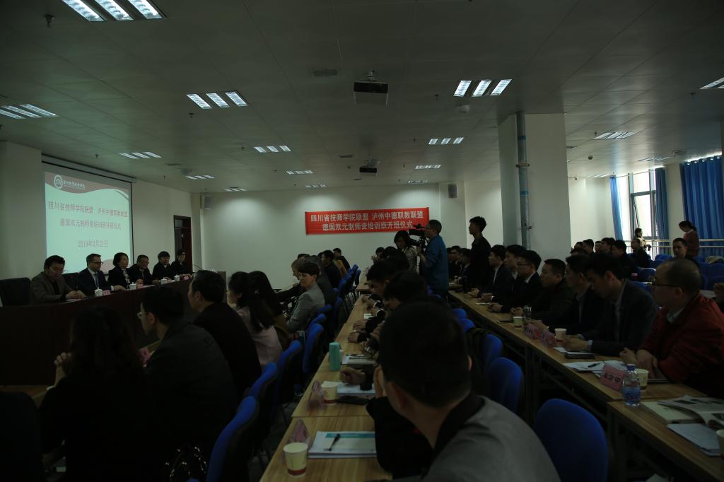 2019年3月21日上午,由四川省技师学院联盟和泸州中德职业教育联盟组织,德国德累斯顿手工业协会和泸州职业技术学院(泸州技师学院)共同承办的德国双元制师资培训班在我院开班。