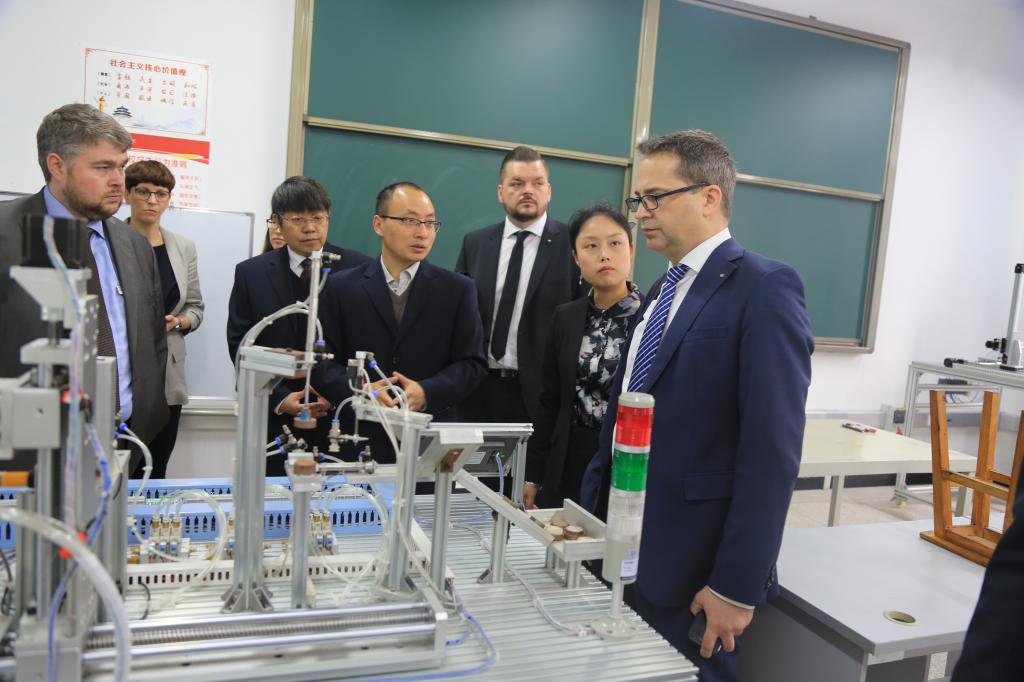 Steffen Sievers充分肯定了学院中德项目取得的成果。通过对实训教学条件的考察、与教学团队的交流,对学院良好的教学环境、严谨的教学作风、中德班高标准的学习质量有了非常深刻的印象。他表示,德方将加强对合作项目成果的宣传,搭建起德国企业来校招聘的平台,促进德国企业与学校的深层合作。