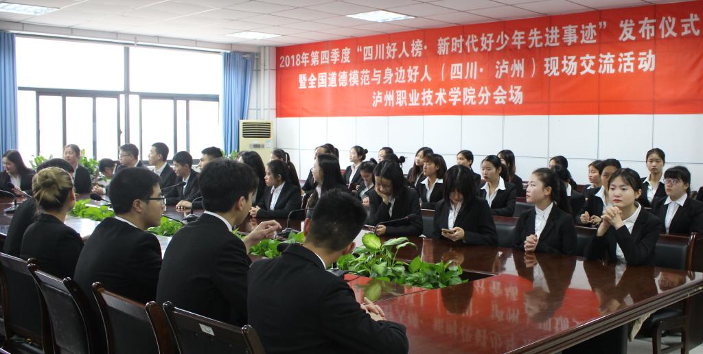 12月21日下午3点,2018年第四季度“四川好人榜·新时代好少年先进事迹”发布仪式暨全国道德模范与身边好人(四川·泸州)现场交流活动主会场在泸州市巨洋大剧院。我院作为本次活动两个分会场之一,团委组织同学在我院综合楼415会议室参加了活动。