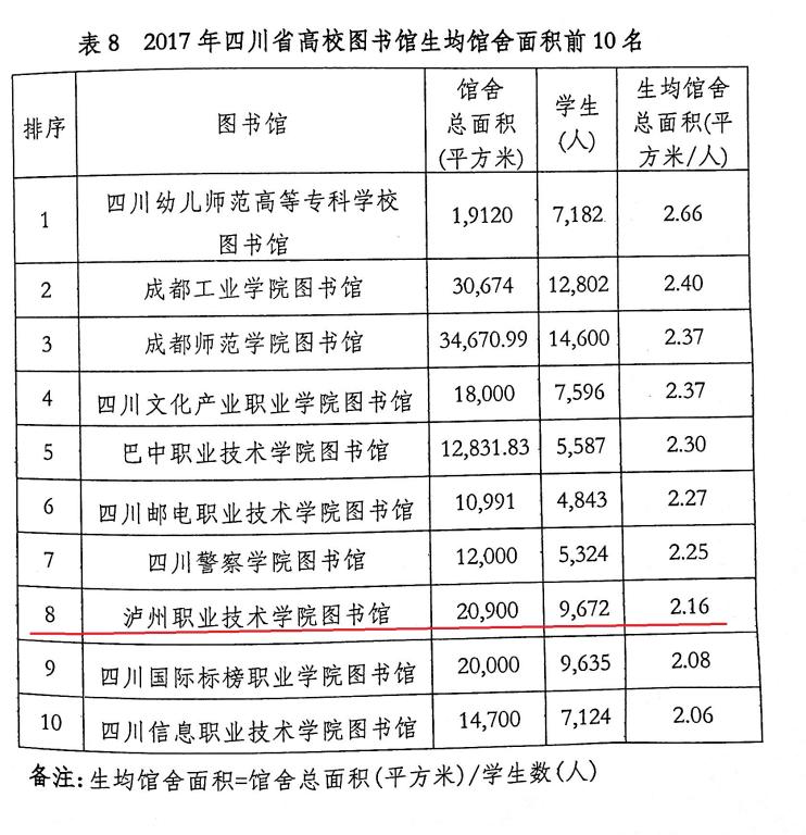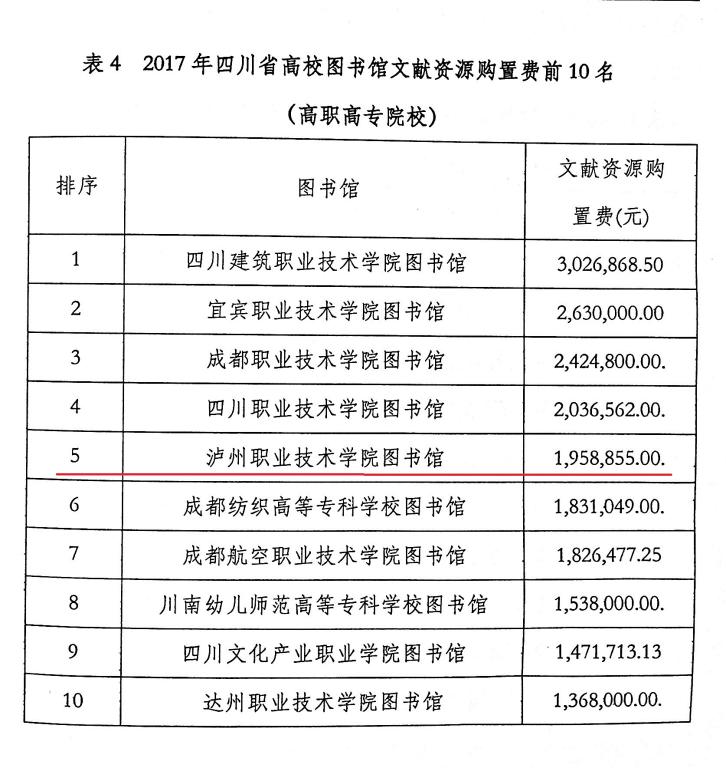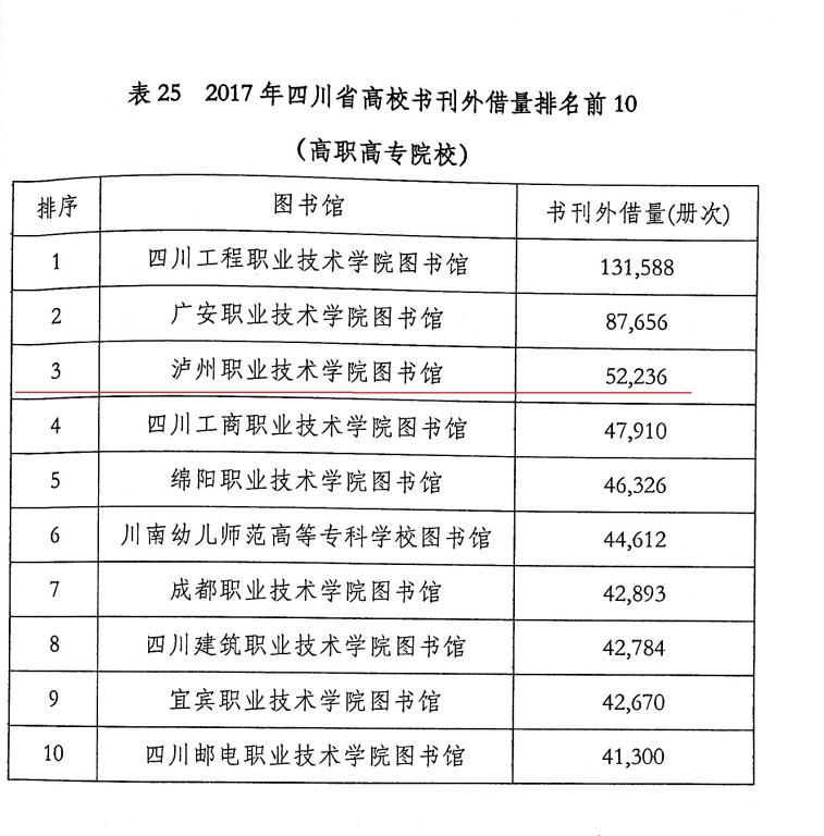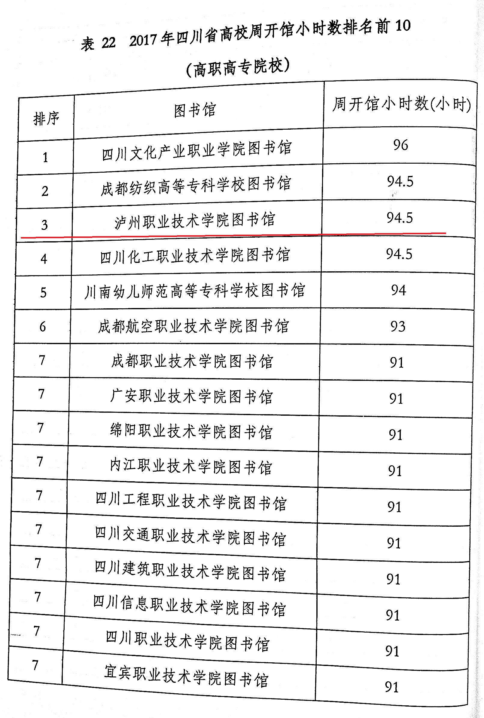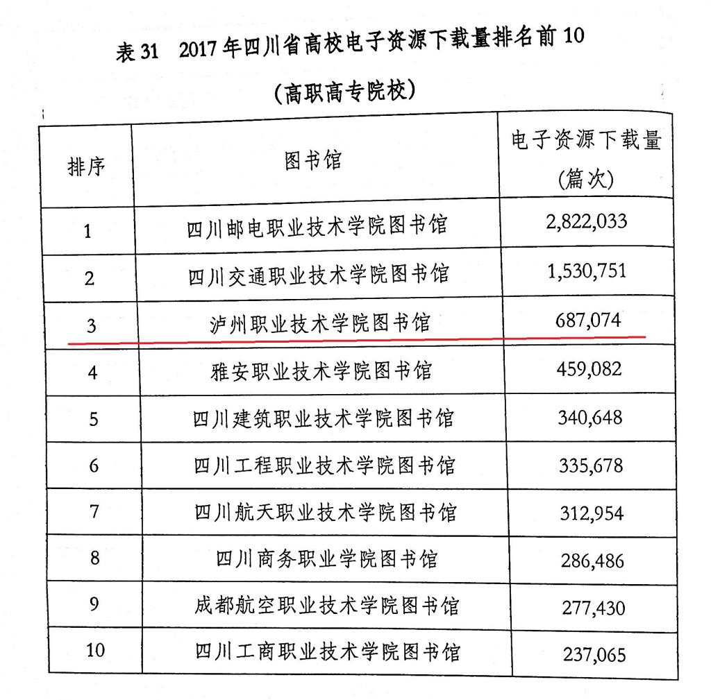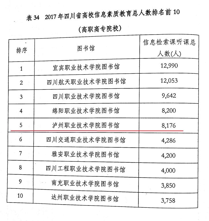 大会公布了《2017年四川省高校图书馆发展报告》,全面总结了全省高校图书馆发展建设情况,发布了各项统计数据与表彰情况。该报告中,我院图书馆被评为四川省高等学校先进图书馆,在十项数据指标当中有六项名列全省高职高专院校前茅:周开馆小时数以94.5(小时)并列第二,书刊外借量以52236(册次)排名第三,电子资源下载量以687074(篇次)排名第三,信息素质教育总人数以8176(人)排名第五,文献资源购置费以1958855(元)排名第五,生均馆舍面积以2.16(平方米/人)排名第八。