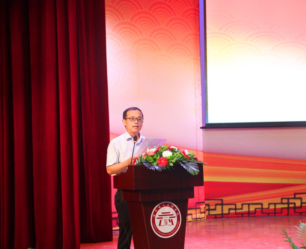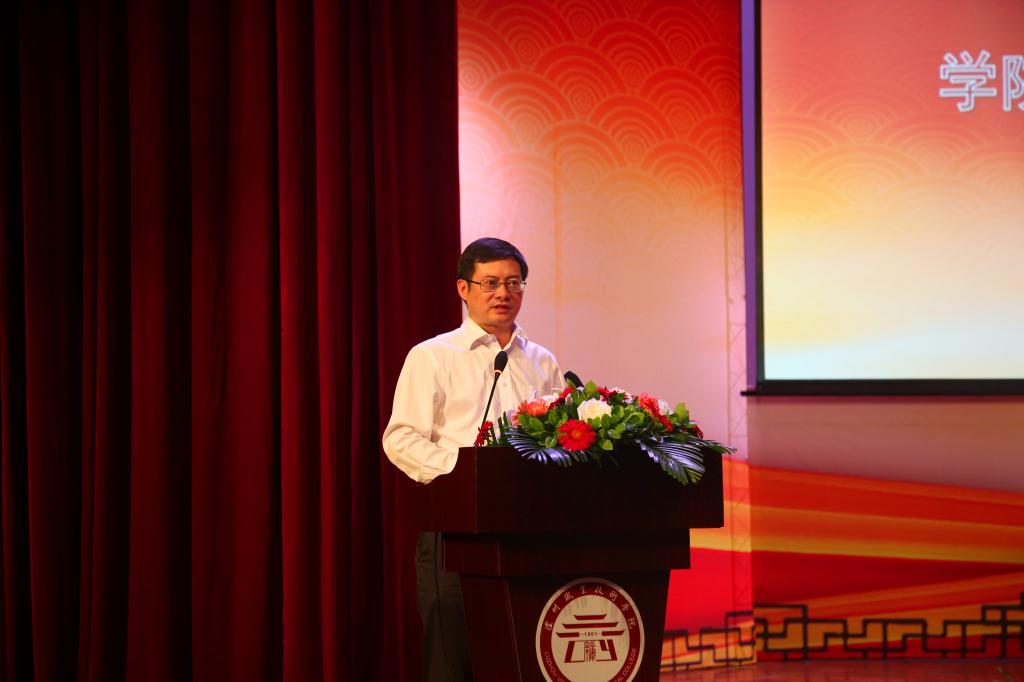 最后,学院党委书记何杰作了重要讲话。他首先回顾了一年来学院的变化:一是通过大学习、大调研,凝聚人心激发干劲。二是办学规模不断扩大,发展保障力得到增强。三是内涵建设不断强化,办学能力服务水平得到显著提升。四是不断创新办学体制机制,产教融合校企合作持续深化。同时,他也向全院教职员工提出了五点希望:一、坚持责任担当,用平凡铸就非凡;二、坚持以德立教,用人格以身示范;三、坚持学高为师,用学识造就英才;四、坚持师者仁心,用爱心润泽灵魂;五、坚持团队合作,用情做最好自己。