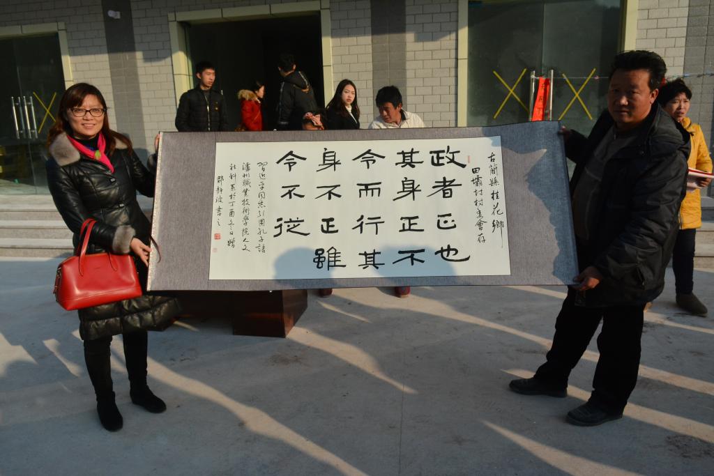 户外的文化扶贫掀起了本次活动的高潮。人文系、艺术系、民盟支部给村民赠送了大量的精美字画,邹静波老师现场书写、赠送春联。异趣横生的书画作品和春联,让村民惊叹的同时也感受到了别样的温暖。扶贫队伍还为一对一帮扶的农户提前送去春节的慰问品,将党和政府的关怀和温暖送到村民手里,助力他们打赢脱贫攻坚战。