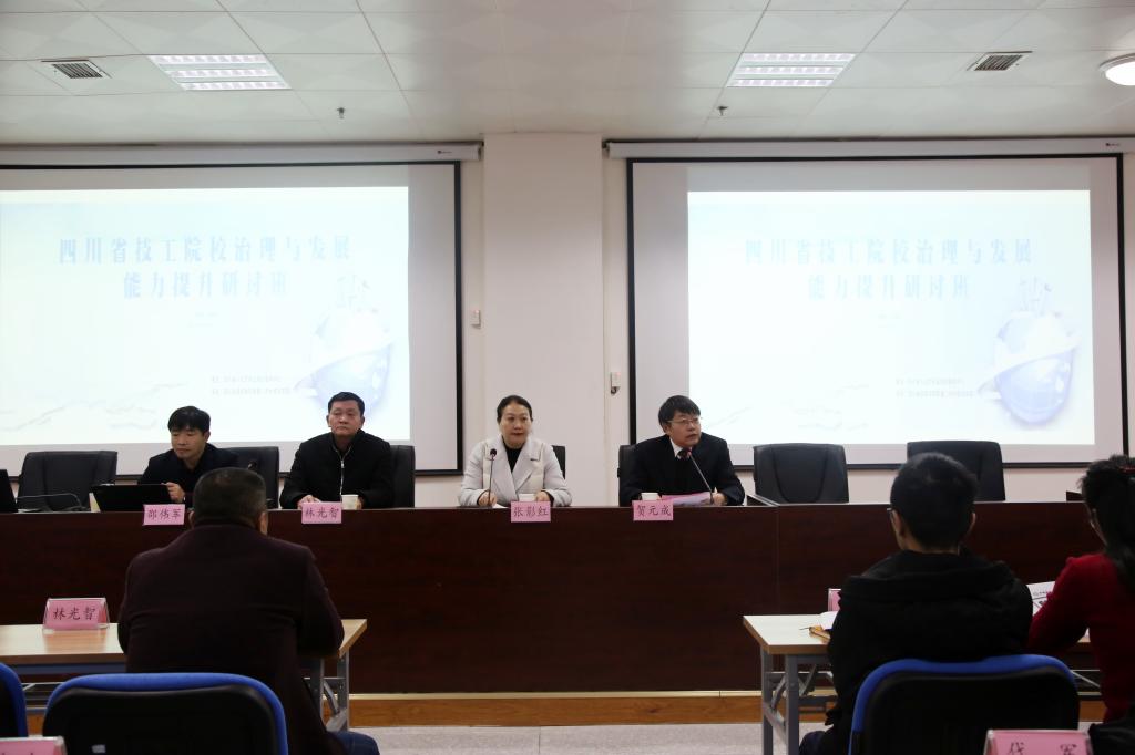 本站讯(信息来源:宣传部)为深入学习贯彻党的十九大精神,落实好省委省政府的决策部署,提升四川省技工院校发展水平,2017年12月14日上午,由四川省人社厅主办的四川省技工院校治理与发展能力提升研讨班在我院正式开班。四川省人社厅职业培训指导中心主任张影红、泸州市人社局副局长林光智,全省10多个市(州)人社局和78所技工院校、中高职院校共140余名代表出席开班仪式,学院院长贺元成教授主持开班仪式。