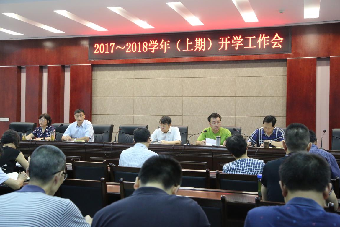8月25日上午,学院在综合楼510会议室召开了新学期开学前全体干部大会。会议第一阶段举行“创文”迎检攻坚动员大会,第二阶段布置学院2017—2018学年上期开学工作。院长贺元成主持会议,全院科级以上干部参加会议。