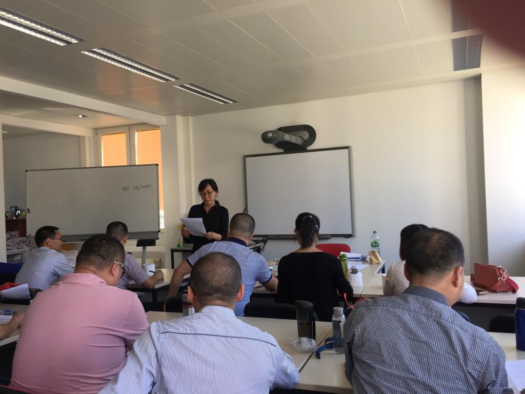 8月7日是培训的第一天,德累斯顿工业大学继续教育学院院长佟永强为大家授课。佟永强主要为大家总结了前两次的学习情况,重点讲解了本阶段主要学习任务和学习安排,以及今后在学习和实践过程中需要注意的一些问题,并为大家指明回国后进行“双元制”教学实践和专业建设的主要方向。围绕老师们在教学和专业建设中的一些问题,她和大家进行了探讨。