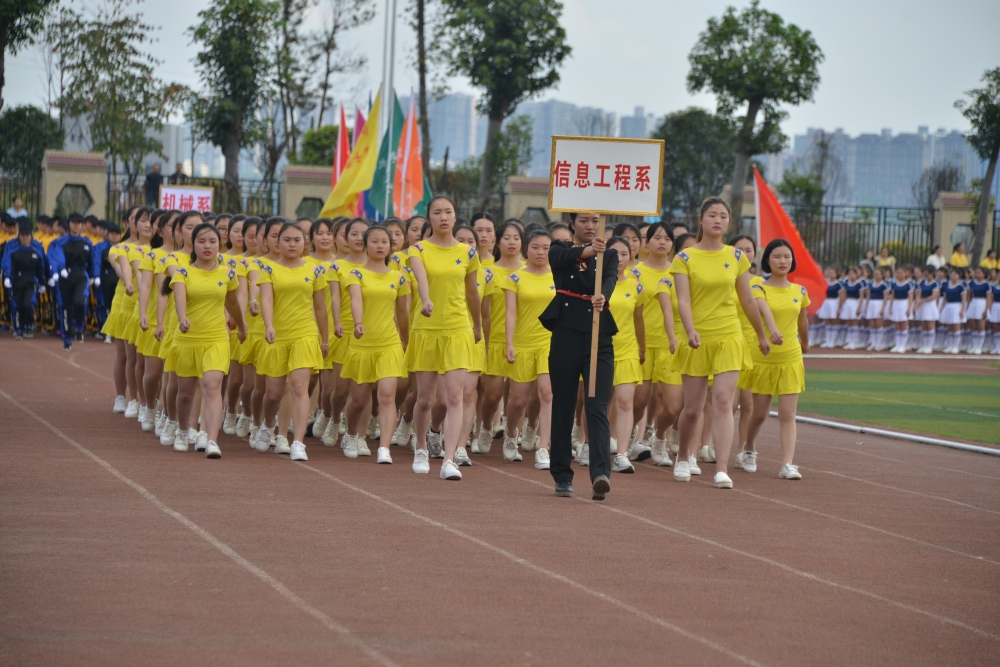 下午3点,开幕式正式开始。学院国旗队、校旗队、会徽队、彩旗队、裁判队、教师队、学生志愿者方队和各系部(院)运动员代表队共计16个方队,喊着响亮的口号,迈着矫健的步伐,依次经过主席台,接受全院师生的检阅。每个方队精彩的表演展现了全院师生们积极向上、生机勃勃的时代风采,奏响了热情活跃的青春之歌,弘扬了“自强不息,勤奋敬业”的校训精神,博得大家的热烈掌声。