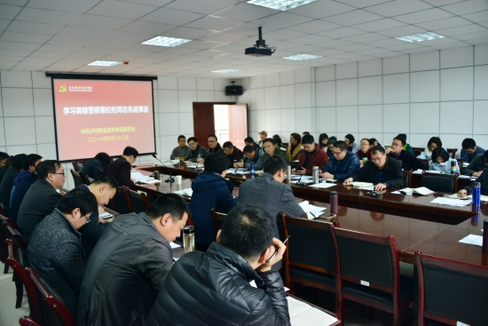 第二阶段会议集体学习了英雄警察蔡松松同志的先进事迹。学院党委副书记、纪委书记张爽以“生死抉择,生的希望留给落水儿童;坚守高原,爱岗敬业书写忠诚警魂;一生奉献,责任担当诠释从警为民”三个篇章带领大家重温了蔡松松同志的先进事迹,学了蔡松松同志爱岗敬业、心系群众、敢于奉献、忠诚担当的为民情怀与高尚情操。贺元成强调,蔡松松同志是新时期共产党员的楷模,学院全体党员要坚持向蔡松松同志学习,不忘初心,在为人民服务的道路上继续前行。