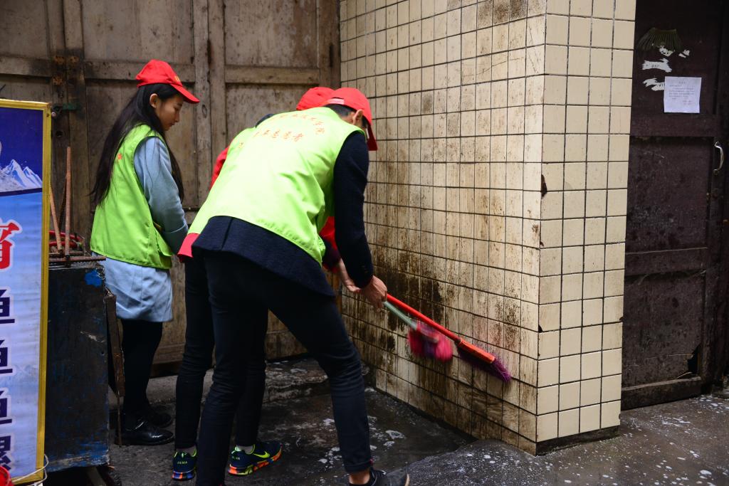 上午9点,学院32位学生志愿者乘坐学院交通车来到人民路社区,社区肖书记表示热情欢迎,对学院一直以来给予的帮助和支持表示感谢,对当天工作进行了安排布置。在社区工作人员带领下,同学们拿起清扫工具分成3个组分别来到建设街、上李子林小区和百家村小区开展环境卫生清理整治。同学们在劳动中积极争先,主动承担最脏最累的活,圆满完成工作任务,良好的表现得到了居民的一致赞扬,居民们肯定学校培养的学生思想好、素质高。