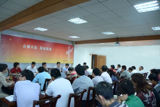 学院副院长彭涛带领大家学习了《职业院校管理水平提升行动计划(2015-2018年)》,重点解读了行动计划中关于“广泛开展突出问题专项治理、管理制度标准建设、管理队伍能力建设、管理信息化水平提升、学校文化育人创新、质量保证体系完善等有机衔接、互为贯通等6大行动”的要求内涵。彭涛要求教务处牵头制定具体方案,重点是明确任务书,明确责任主体,拟定路线图,划定时间表。