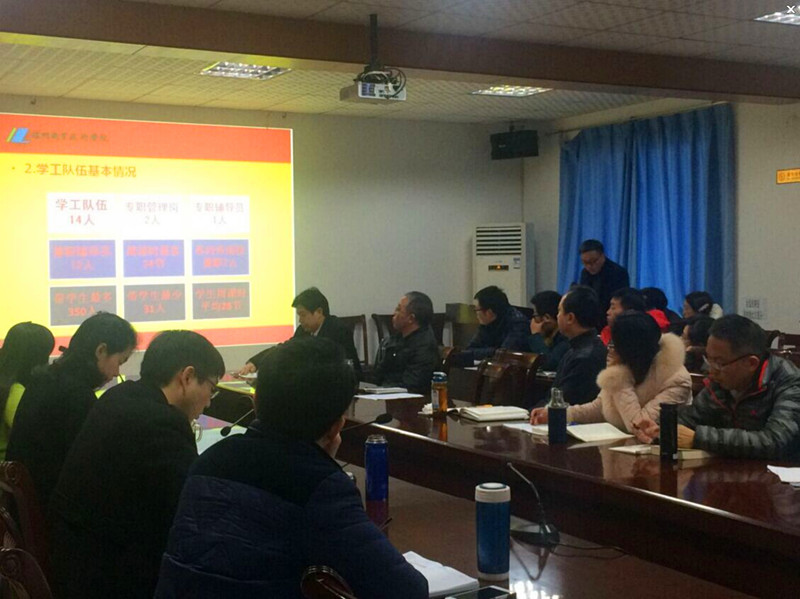 本站讯(信息来源:学生处)2016年1月21日上午,学院2015年学生工作总结暨新校区学生社区化管理模式研讨会在行政楼六楼会议室举行。学院党委副书记、纪委书记张爽出席会议,各系(院)党总支(支部)书记(副书记)、团总支书记、专兼职辅导员及学生处(团委)全体人员参加会议。会议由学生处处长唐家州主持。