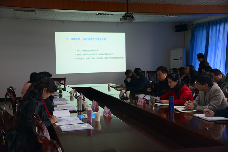 本站讯(信息来源:学生处)11月25日15:30,省教育厅体卫艺处卢旭率省教育厅防艾工作督导组一行4人来我院检查艾滋病防控相关工作。工作汇报会在行政楼六楼举行,我院党委副书记、纪委书记张爽,学生处(团委)及相关职能部门领导、院系党总支(支部)书记(副书记)参加本次防艾工作汇报会,会议由卢旭主持。