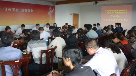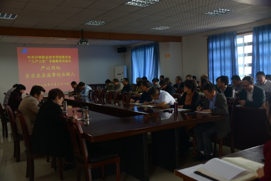 2015年10月14至29日,学院在行政楼六楼会议室召开党委中心组学习扩大会议,分阶段开展了题为“严以用权,实实在在谋事创业做人,做到敢于担当、奋发有为”的“三严三实”专题教育。学院党委书记代华龙主持会议,全体科级以上干部参加会议。